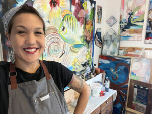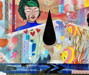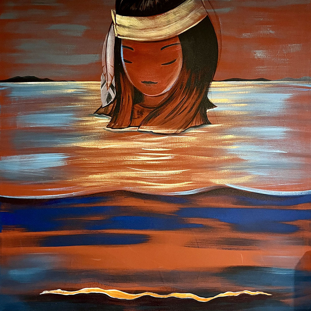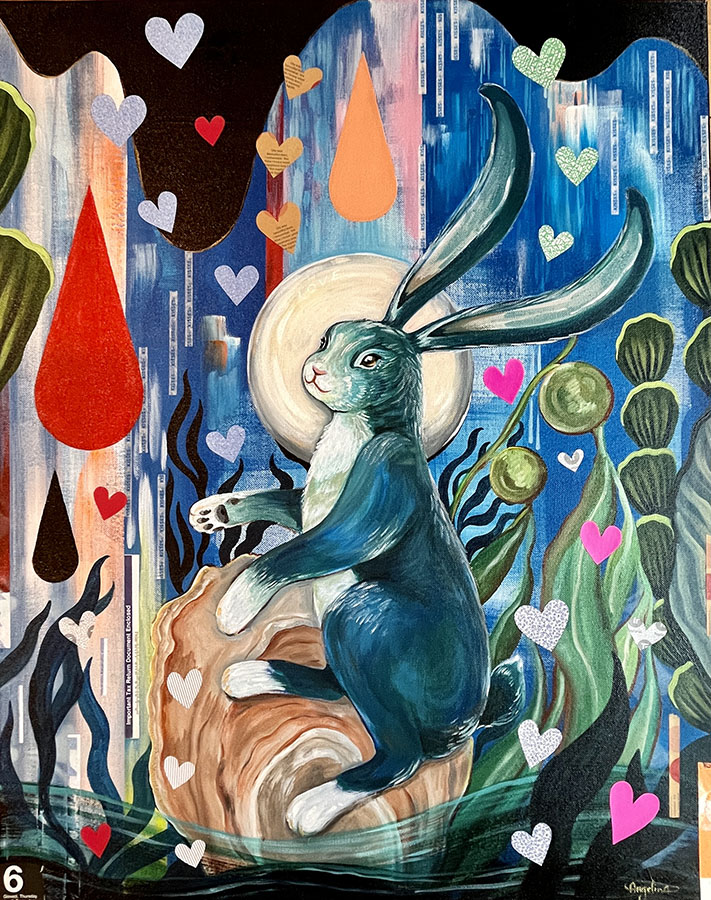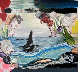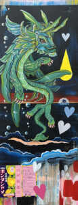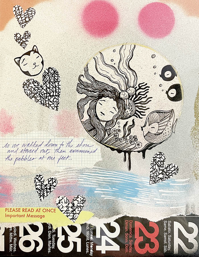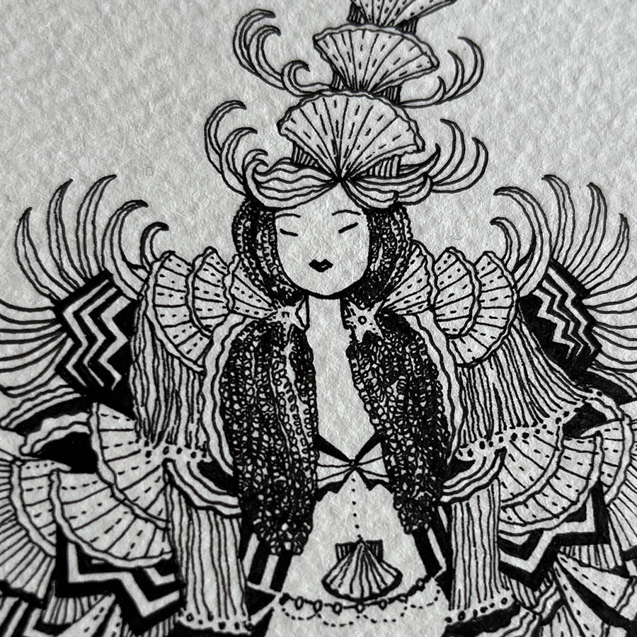 Born in 1971 in Venice Beach and growing up in Northern California, Gina developed a love for art and the ocean from an early age. Professionally she has worked in digital media and graphic design. Her current visual language includes horizons, tears, skeleton fish, oil drops, rocks, seashells, fissures, and kisses. Conservation and respecting nature are part of her ethos. Inspiration comes from many sources, but visually she is drawn to avant-garde fashion, specialty packaging, burlesque and circus performers, and early animation. She likes to draw upon her mixed heritage (Filipina, German, English, and Norwegian) and her ties to Okinawa.