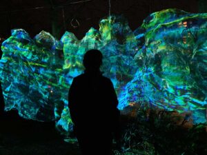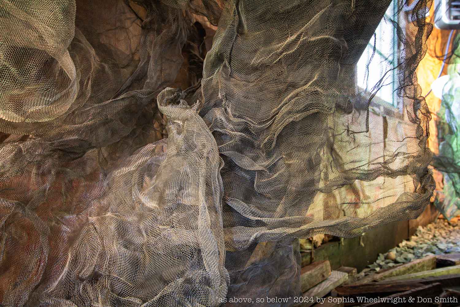 I’m a mixed media sculptor and installation artist creating immersive environments shaped by light, movement, color, and sound. Working with hand-formed aluminum mesh, natural materials, and projection, I make spaces that invite people to slow down, notice, and connect with their surroundings.